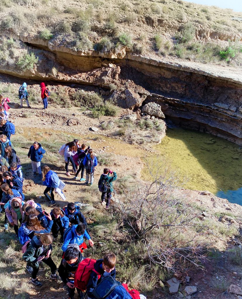 Por eso, hemos aprovechado la asignatura de biología y las materias que están tratando para llevar a todo 1º de ESO a la rica zona geológica que rodea María de Huerva, donde han podido aprender “in situ” sobre la geomorfología y petrología de Aragón.