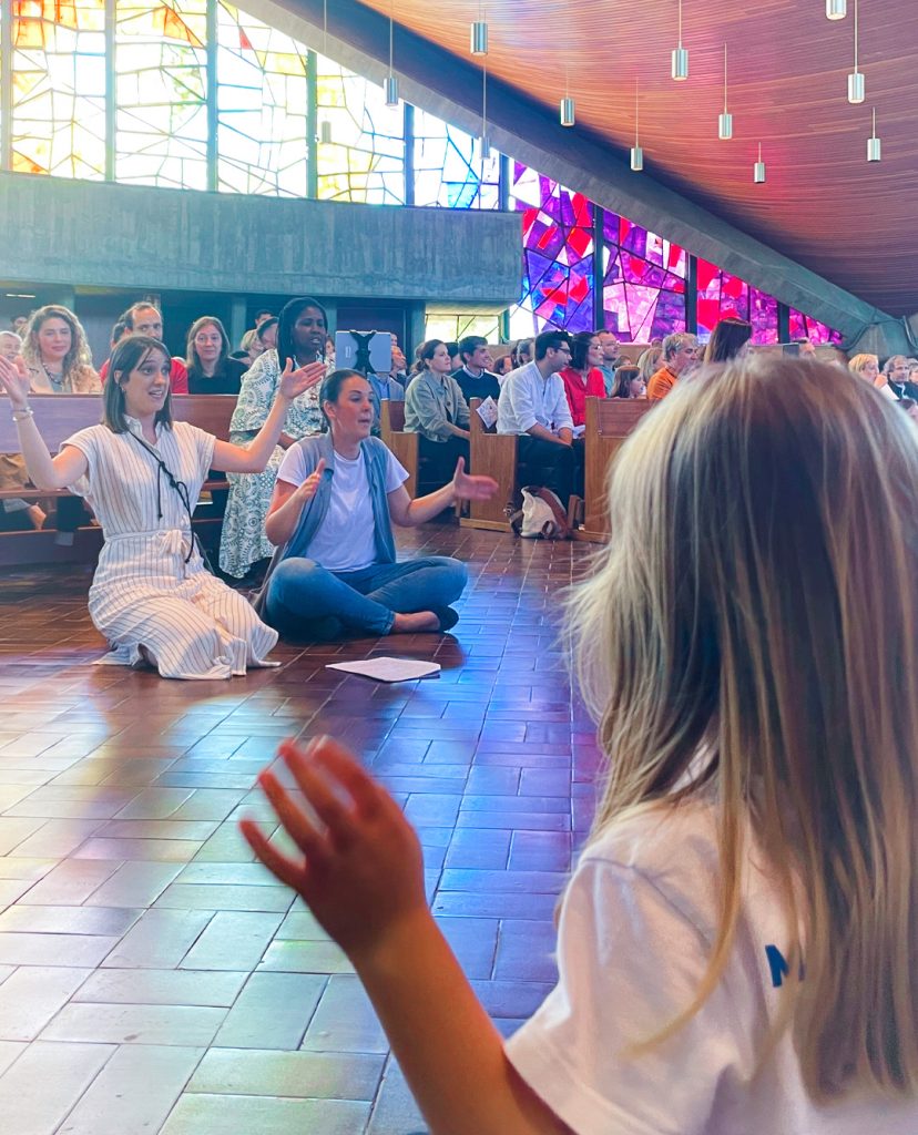 El último nivel en celebrar el fin de curso en nuestra iglesia fue 3º de Infantil, los mayores del ciclo, que el curso que viene cambian de etapa. Por eso sus canciones y representaciones fueron muy especiales, ya que con ellas querían también despedirse de los profesores y monitores que les han acompañado durante sus primeros tres cursos de vida escolar.