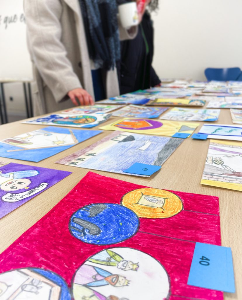 as niñas y niños desde infantil hasta 6º de primaria, organizados en cuatro categorías, ponen toda su creatividad y su cariño para crear las postales de Navidad que participan en el concurso. Los profesores y personal del centro somos los encargados de votar al mejor de cada categoría, labor que nos resulta realmente difícil porque hay verdaderas obras de arte.