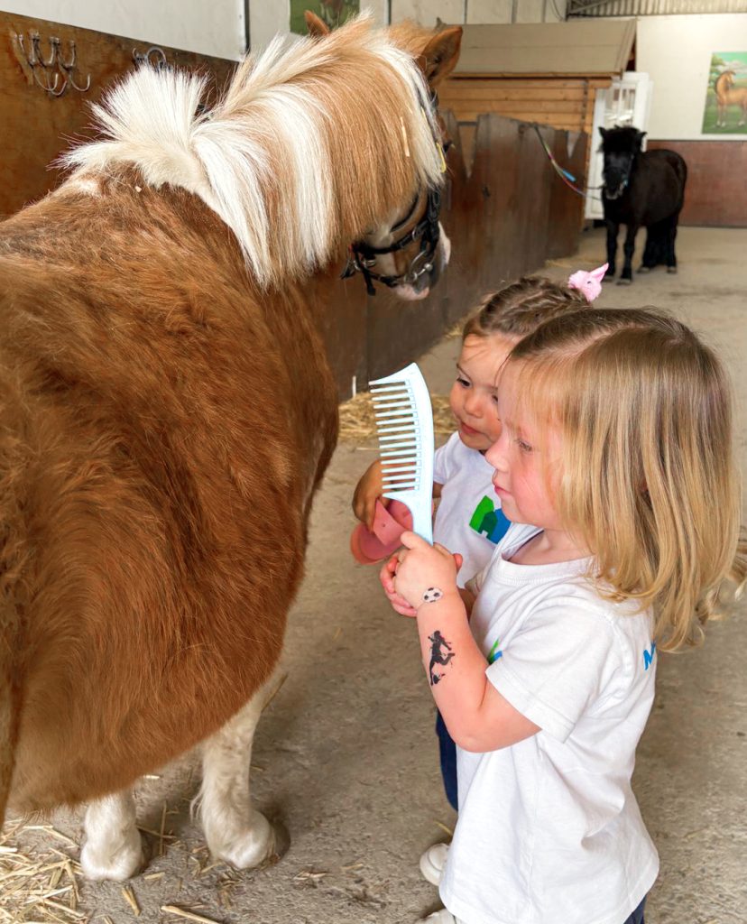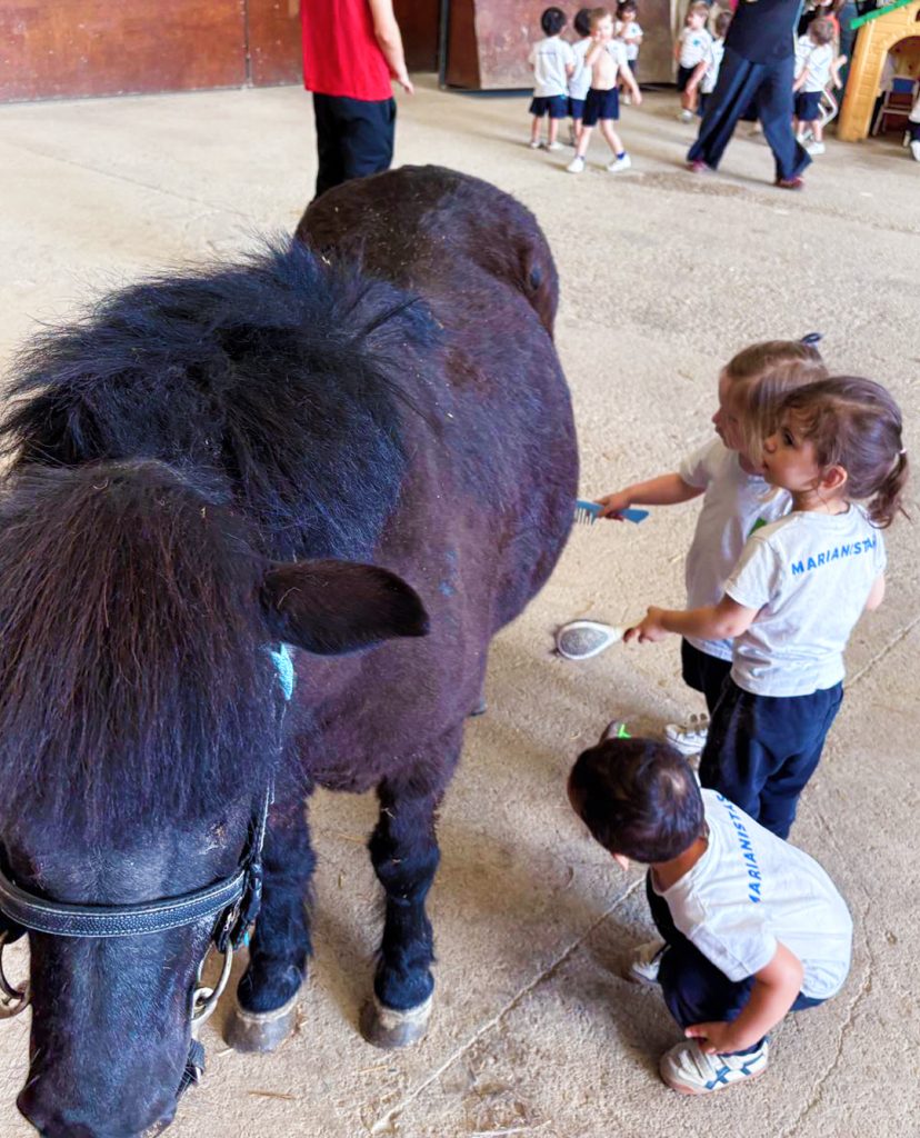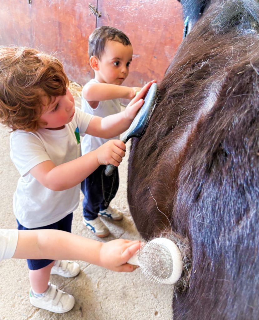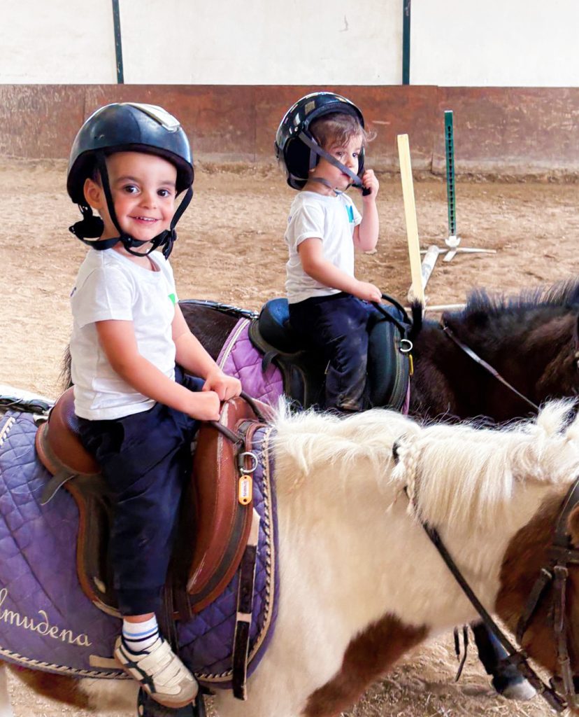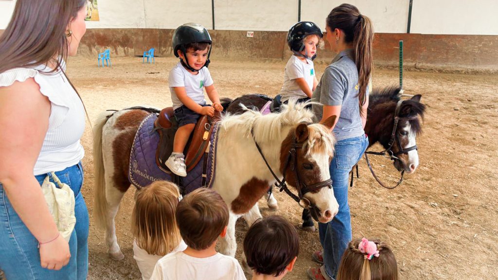 Nuestros chiquitines de 2 años han ido de excursión al PonyClub, donde han tenido la oportunidad de cuidar a los ponis que viven allí: les han dado de comer, los han cepillado y hasta han montado en ellos para dar una vuelta como unos auténticos “cowboys”.