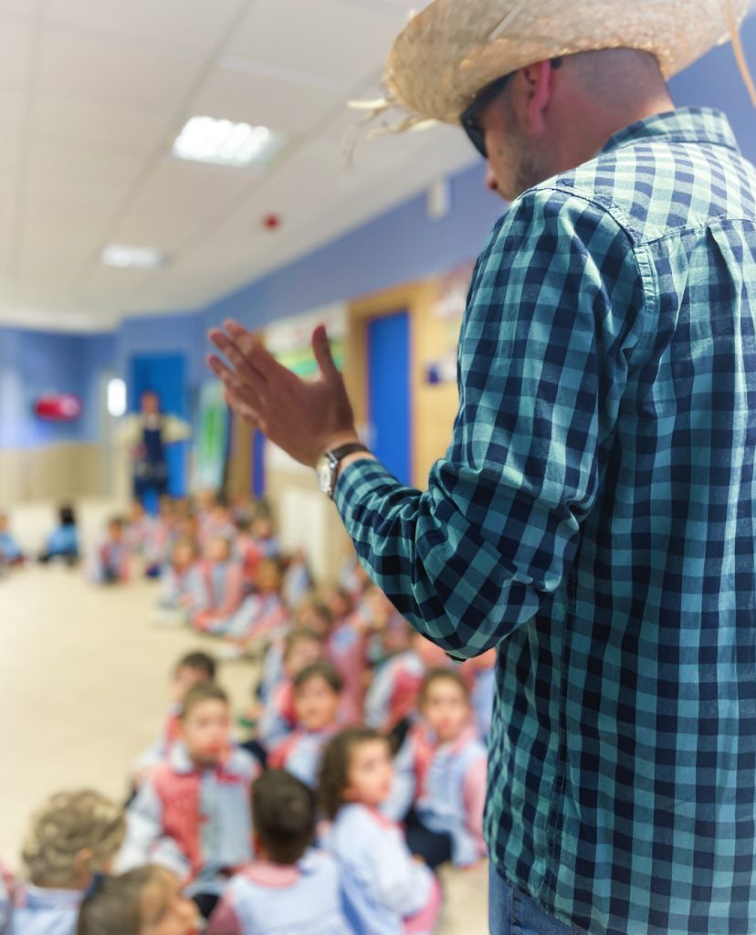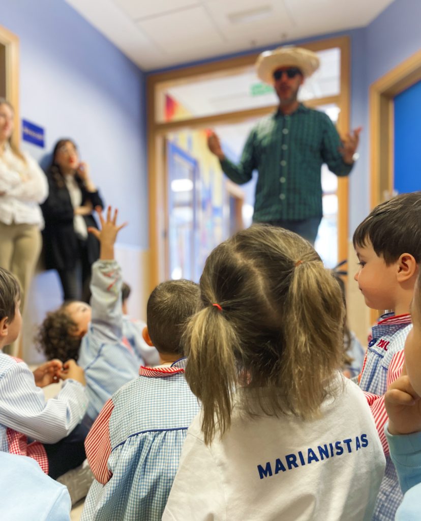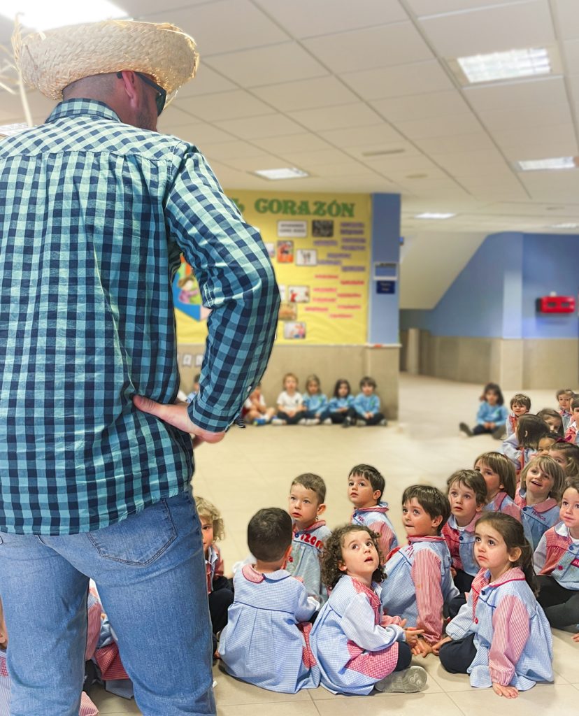 ¿A quién esperan tan intrigados nuestras niñas y niños de 1º de Infantil…? Pues nada más y nada menos que ¡al granjero Tomasón!, quien, como cada año, nos invita a visitar su granja…
